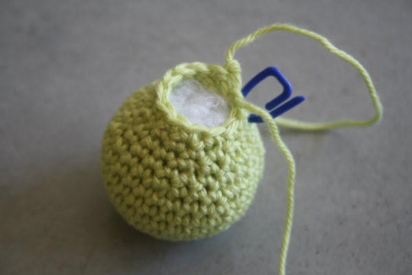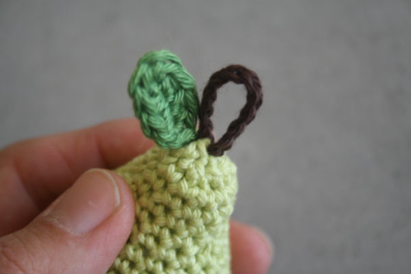 Tee 10 ahelsilmust. Kui soovid kasutada pirni võtmehoidjana, vii ahelsilmustest saba läbi võtmehoidja rõnga, kinnita ja peida otsad.