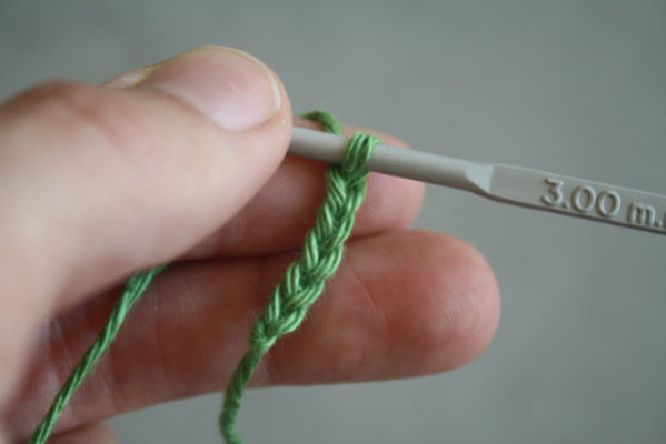 - kolme värvi lõnga – natuke helerohelist, õige pisut tumerohelist ja pruuni (näidise valmistamiseks on kasutatud puuvillast lõnga Steinbach Wolle Capri, 50 g / 125 m)