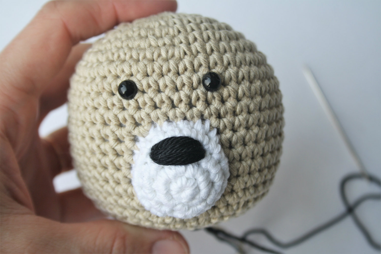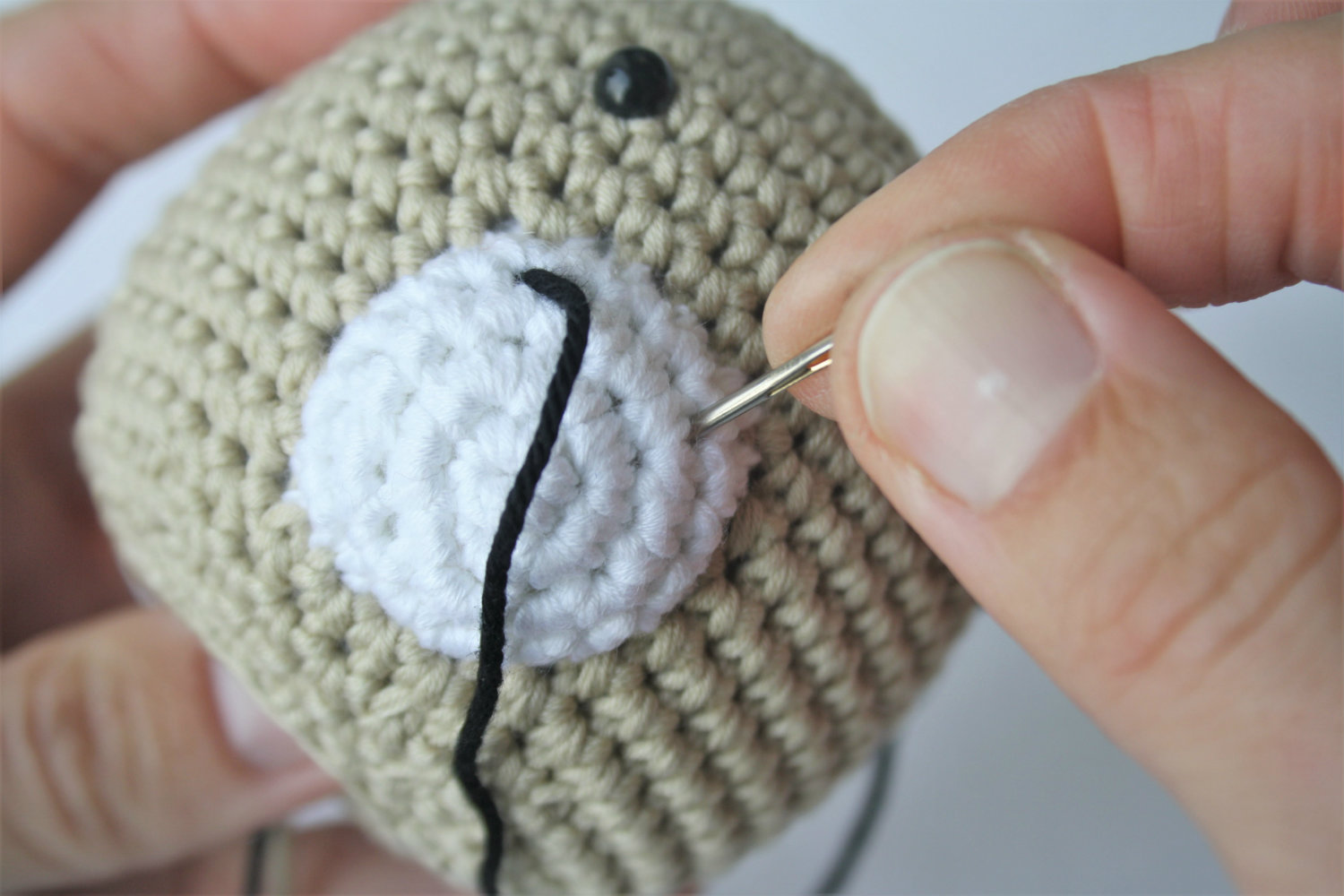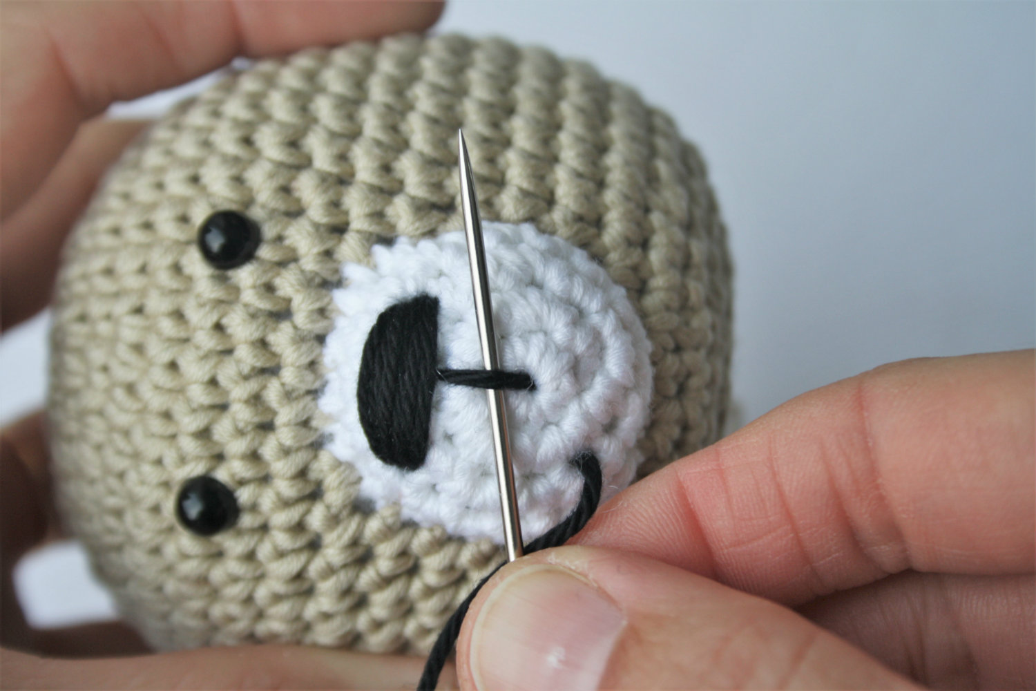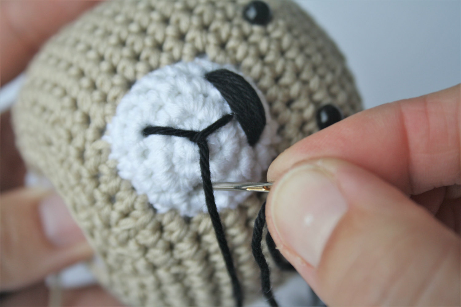 Kui mänguloomale on ettenähtud koon, õmble see esmalt oma kohale. Nina saab tikkida ka otse näole.