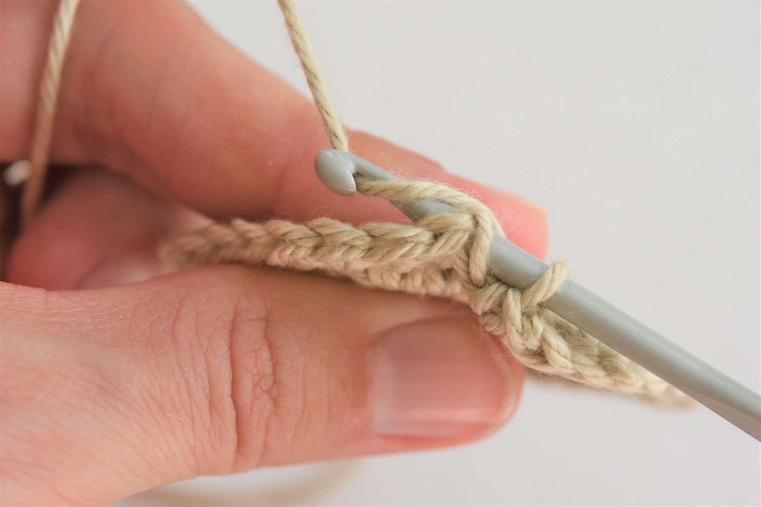 4. Võta lõng uuesti heegelnõelale ja tõmba läbi kahe heegelnõelal oleva silmuse.