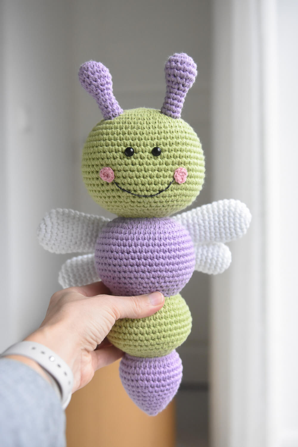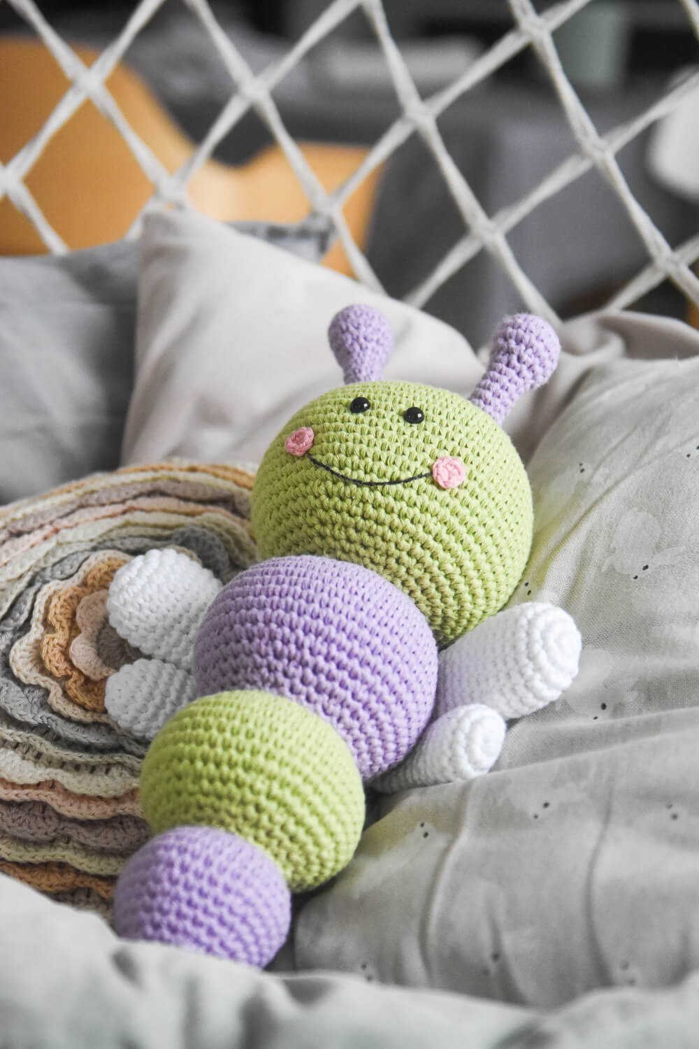 Heegeldatud pehmest puuvillasest lõngast, täidetud kvaliteetse allergiavaba kerakiuga.
