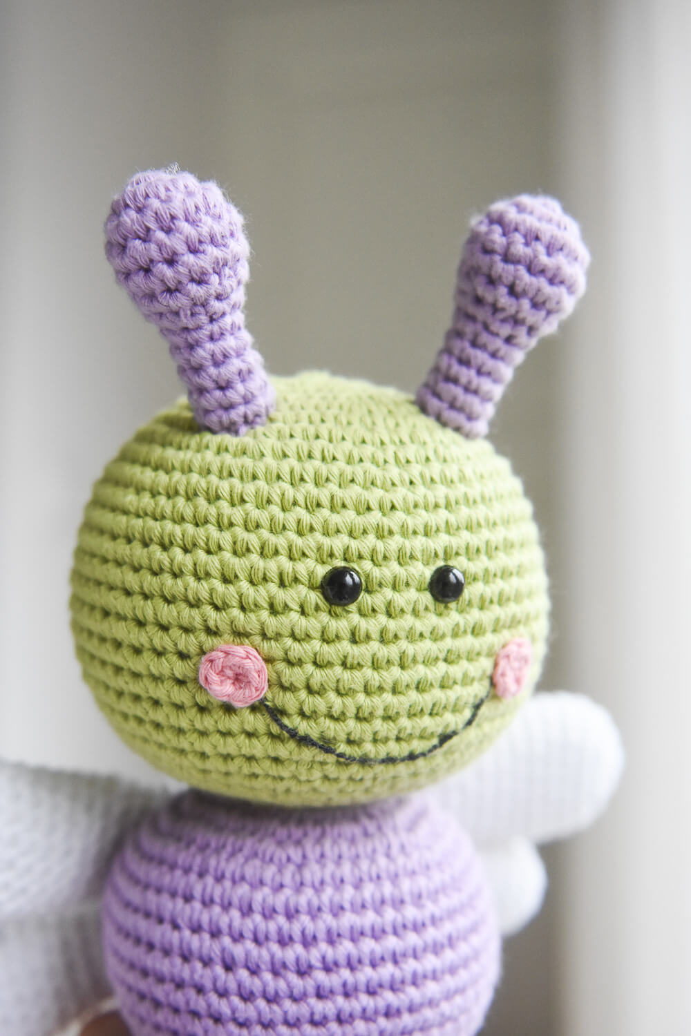 Suur kaisuputukas on vahva kingitus beebile või väikelapsele. Rõõmsavärvilisel putukal on suured tundlad ja armsad roosad põsed. Tema suu on rõõmsalt naerul.
