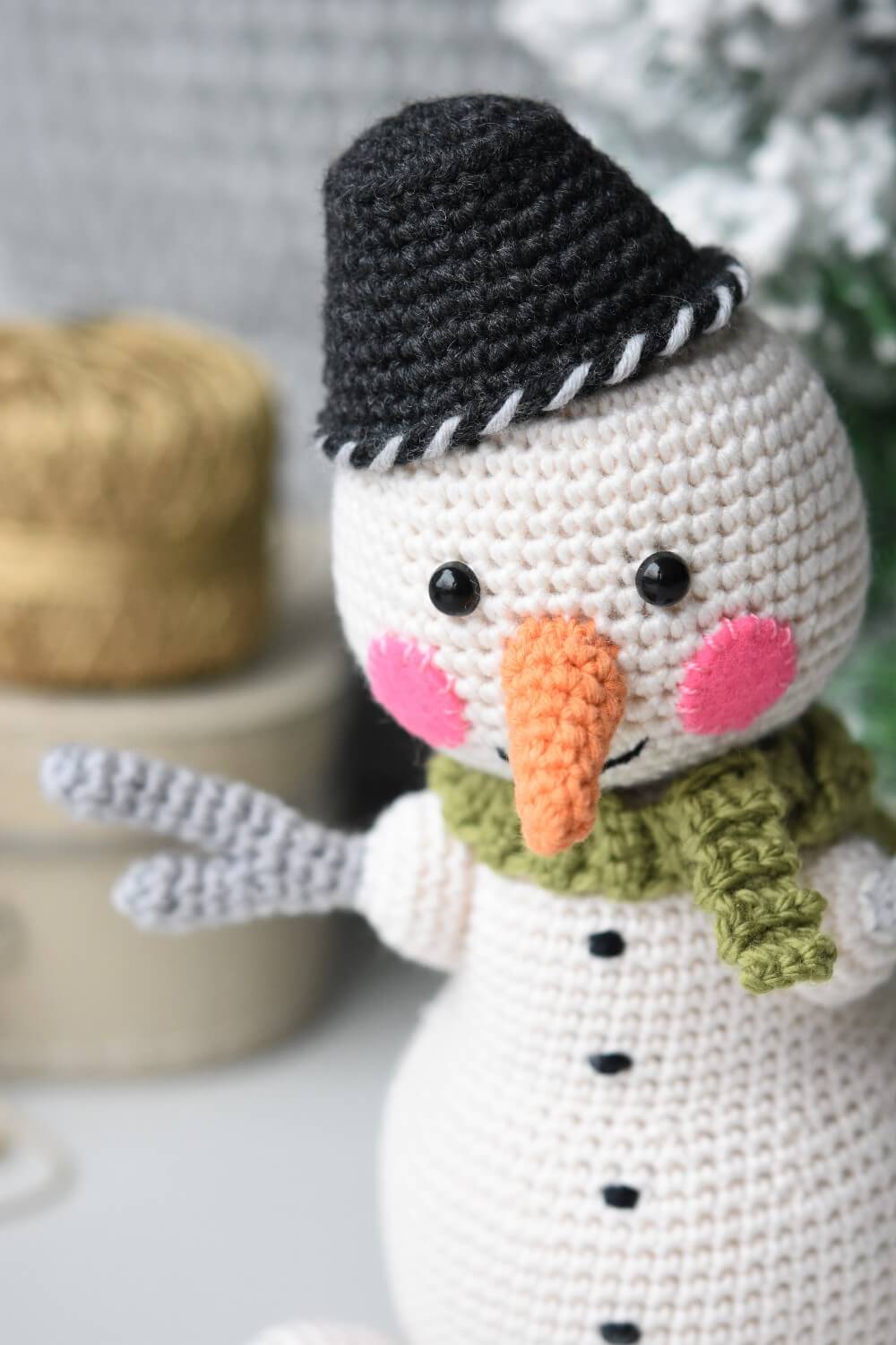 See heegeldatud lumememm on täpselt nagu päris lumest tehtud lumemees – mustade söest nööpide ja oksadest torgatud kätega. Peas vana ämber ja kaelas kulunud sall.