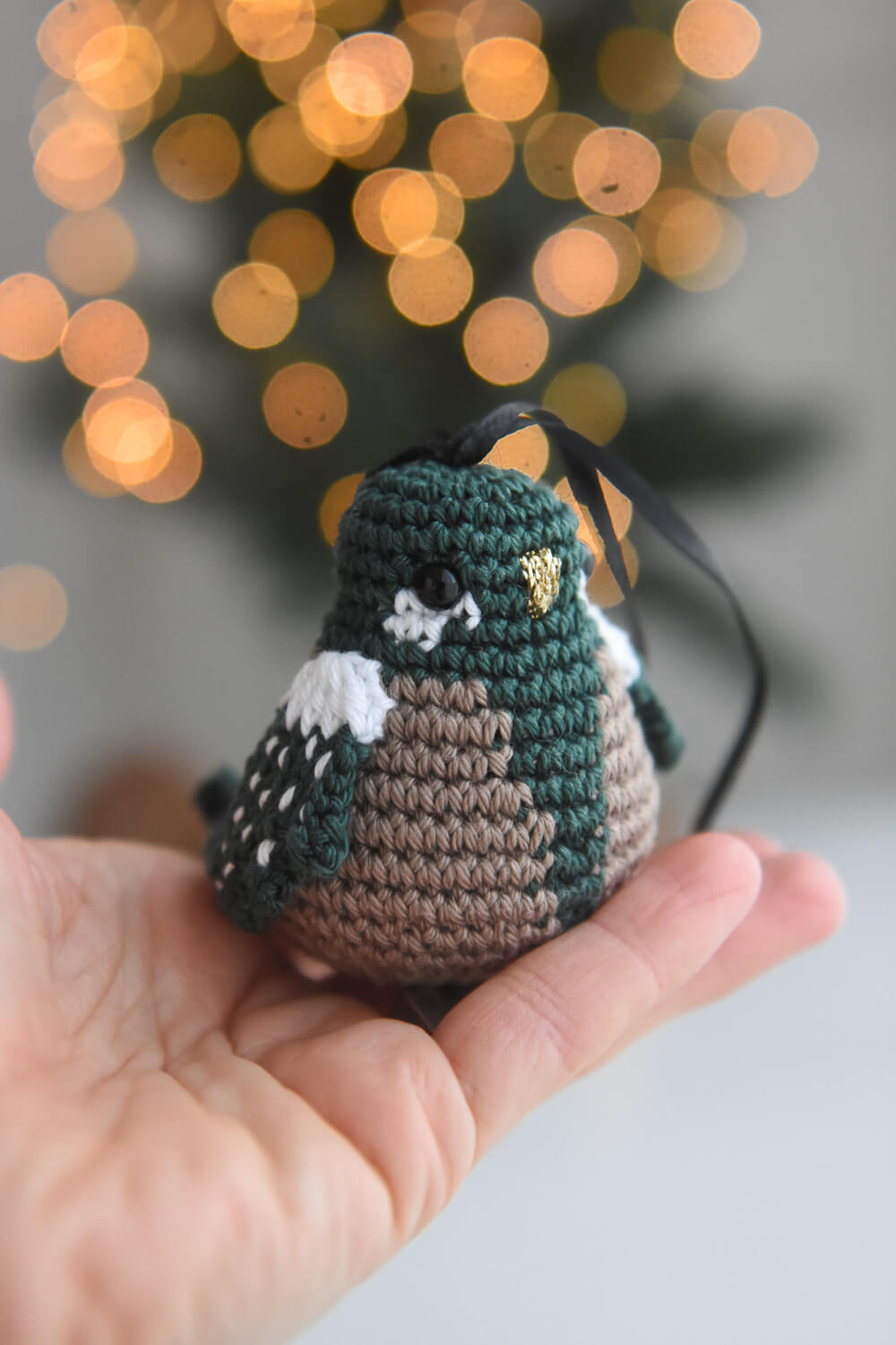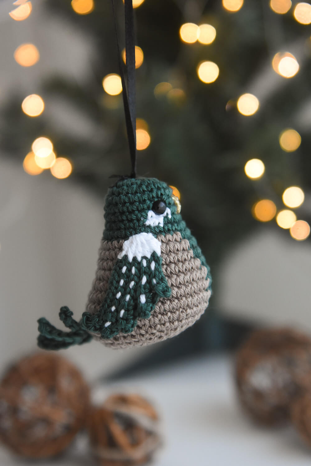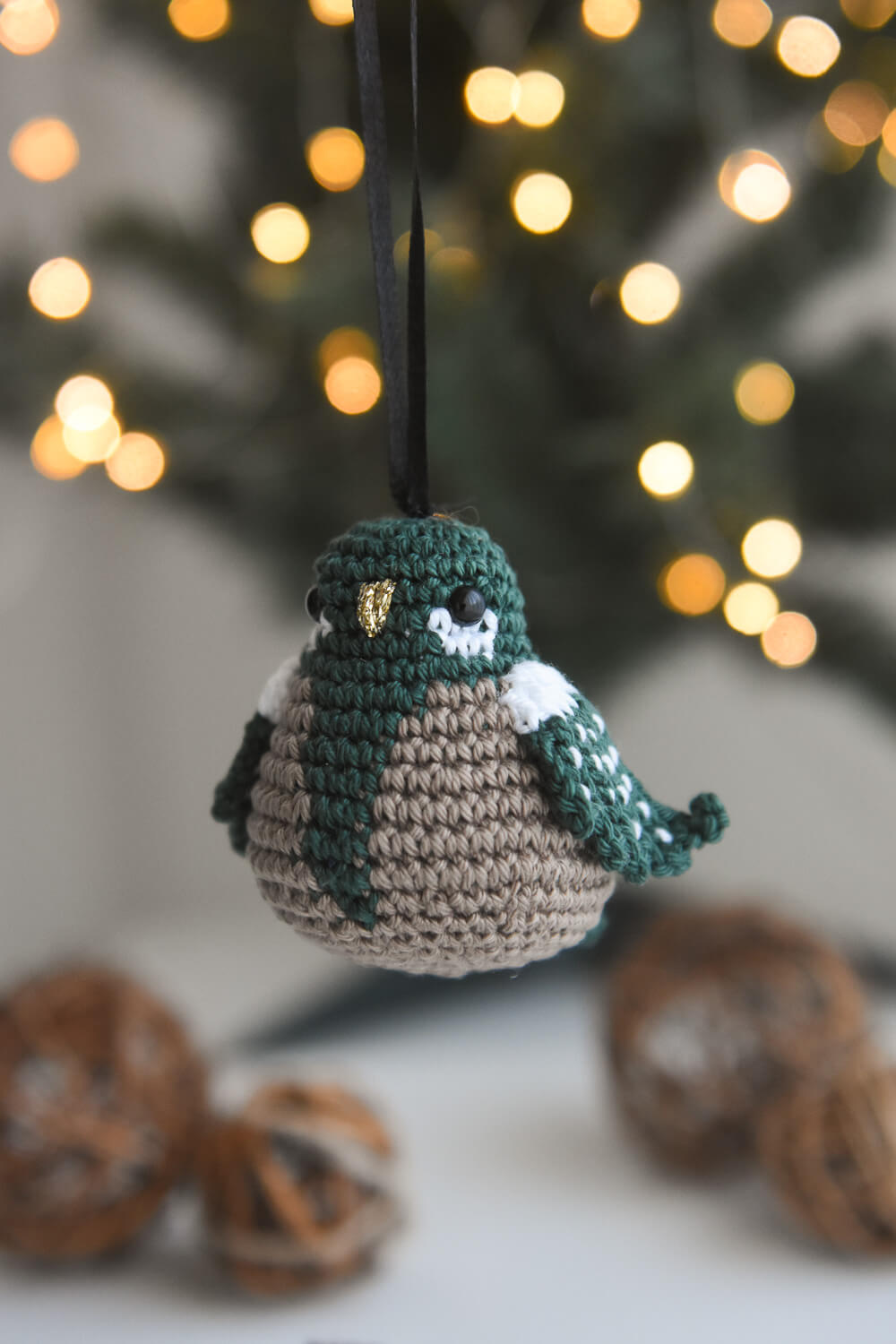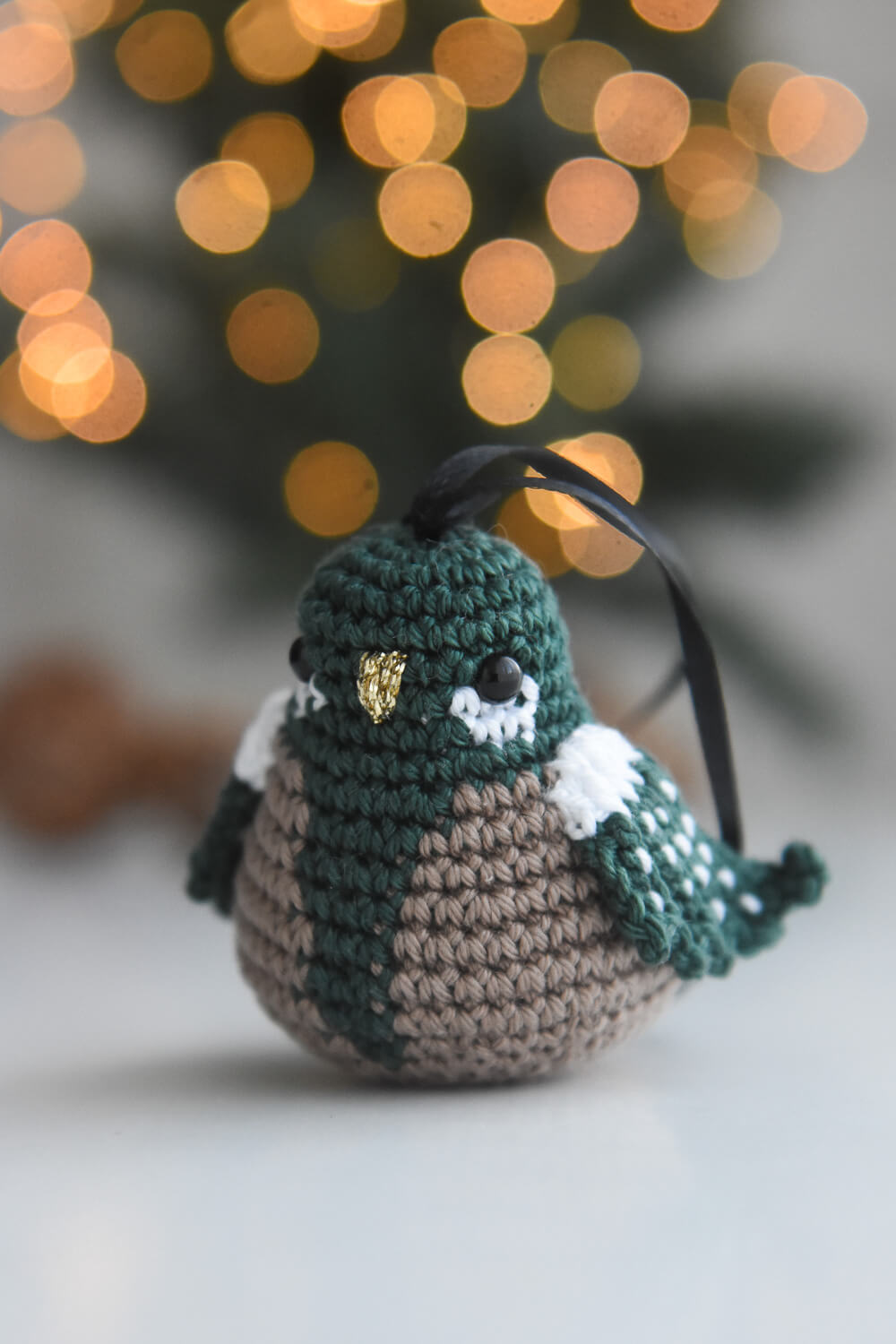 Kui otsid väikest ja armsat kingitust emale, vanaemale, sõbrale või töökaaslasele, sobib see heegeldatud lind imehästi. Kaunis käsitööna valminud kuuseehe on heegeldatud rohelises ja beežis toonis, linnu nokk on tikitud särava kuldniidiga, lisades veidi pidulikkust.
