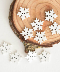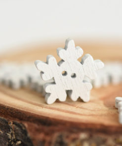 Komplektis on 20 puidust lumehelbe nööpi.