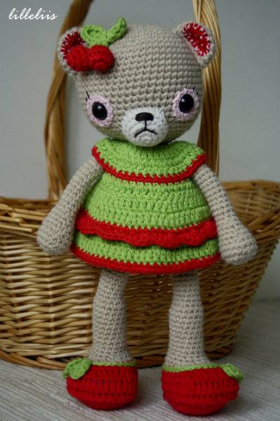 See siin on Tujukas Berta. Ta on Dorise, minu eelmise karu, sugulane. Nad on küllaltki sarnased, aga samal ajal nii erinevad. Kui Doris oli vanaaegse välimusega, just nagu mustvalgest filmist pärinev karu, siis Berta on palju värvilisem ja kaasaegsem.