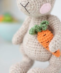 Made with a special hairy wool yarn that makes this bunny super soft. Stuffed with anti-allergenic fiberfill.