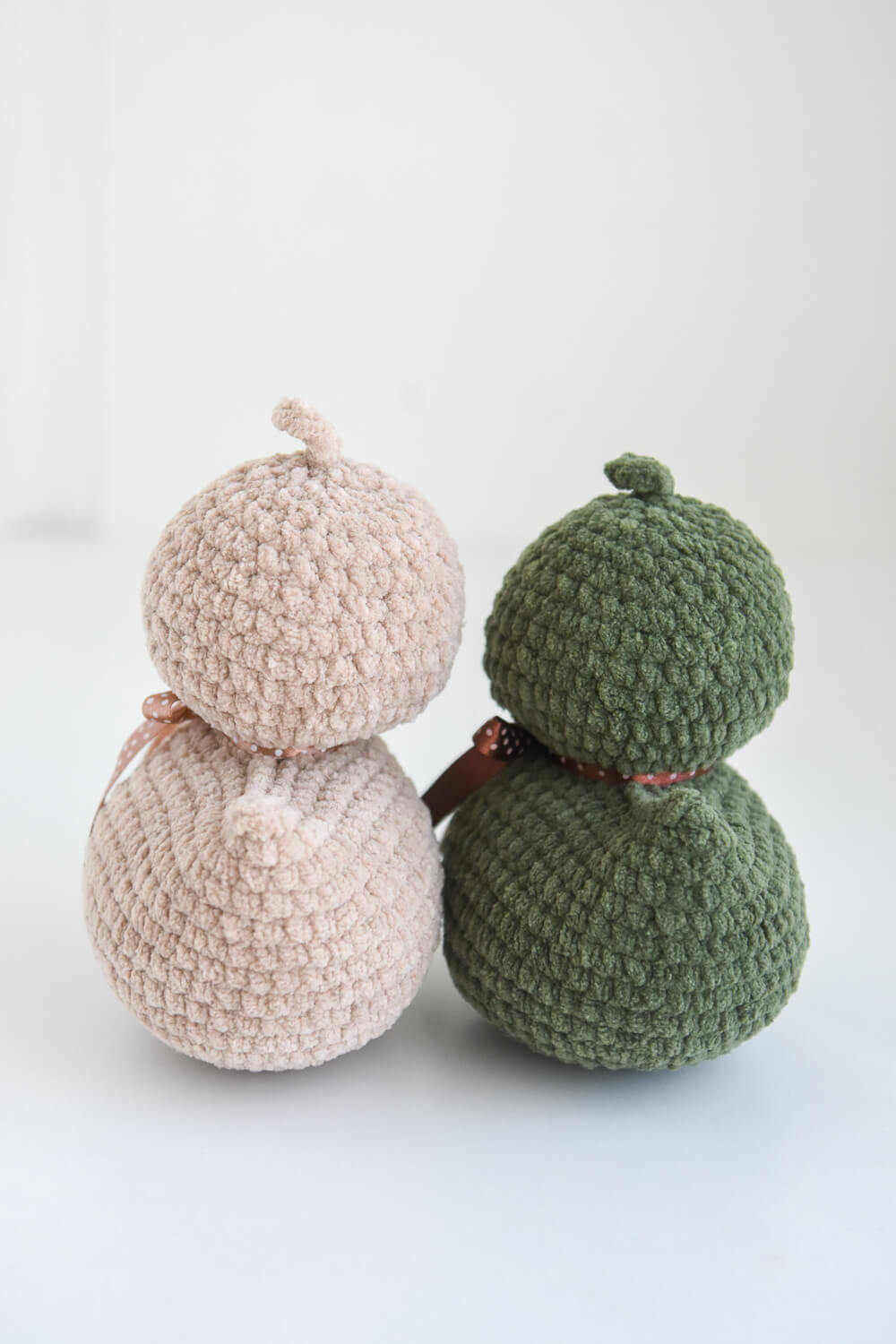 This pattern uses bulky chenille yarn and DK-weight cotton, with 2.5 mm and 3.75 mm crochet hooks.