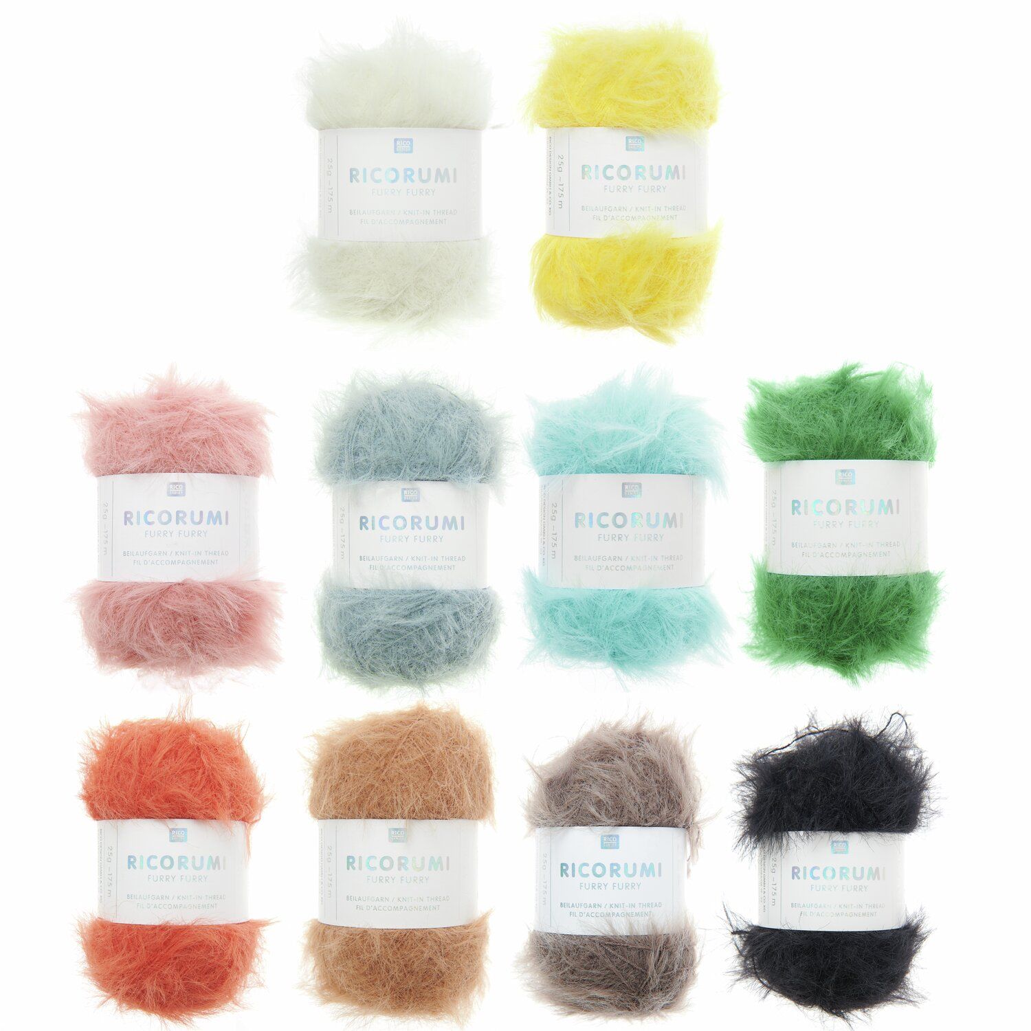 The colors are perfectly matched to the Ricorumi cotton yarn palette, allowing the faux fur yarn to be easily crocheted together with matching cotton shades for seamless color coordination.