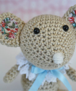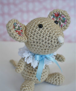 This little mouse was originally inspired by spring expectation. It has a lovely collar around the neck and fabric patches covering the ears.